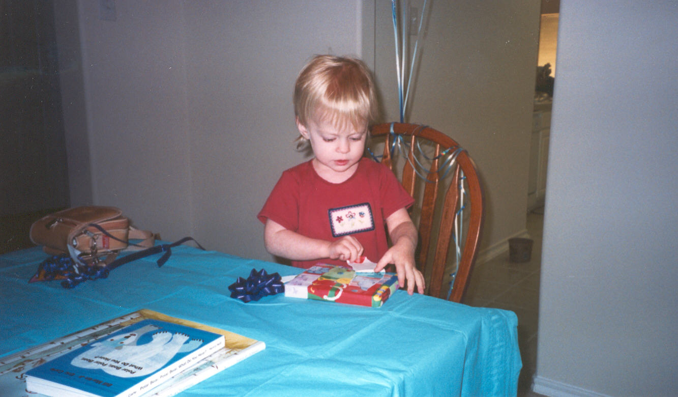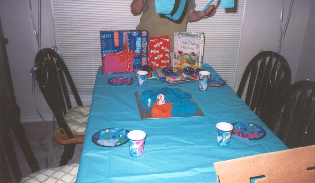 On November 30th, 2002, 11 days after her actual birthday, we celebrated Abby’s birthday with a party at her Aunt Christina and Uncle Mike’s new house. She got scared when everyone started singing “Happy Birthday” because all of a sudden she realized she was the center of attention. She had a fun time opening presents and she blew out her own candle on the Blue’s Clues cake that her mom baked for her.