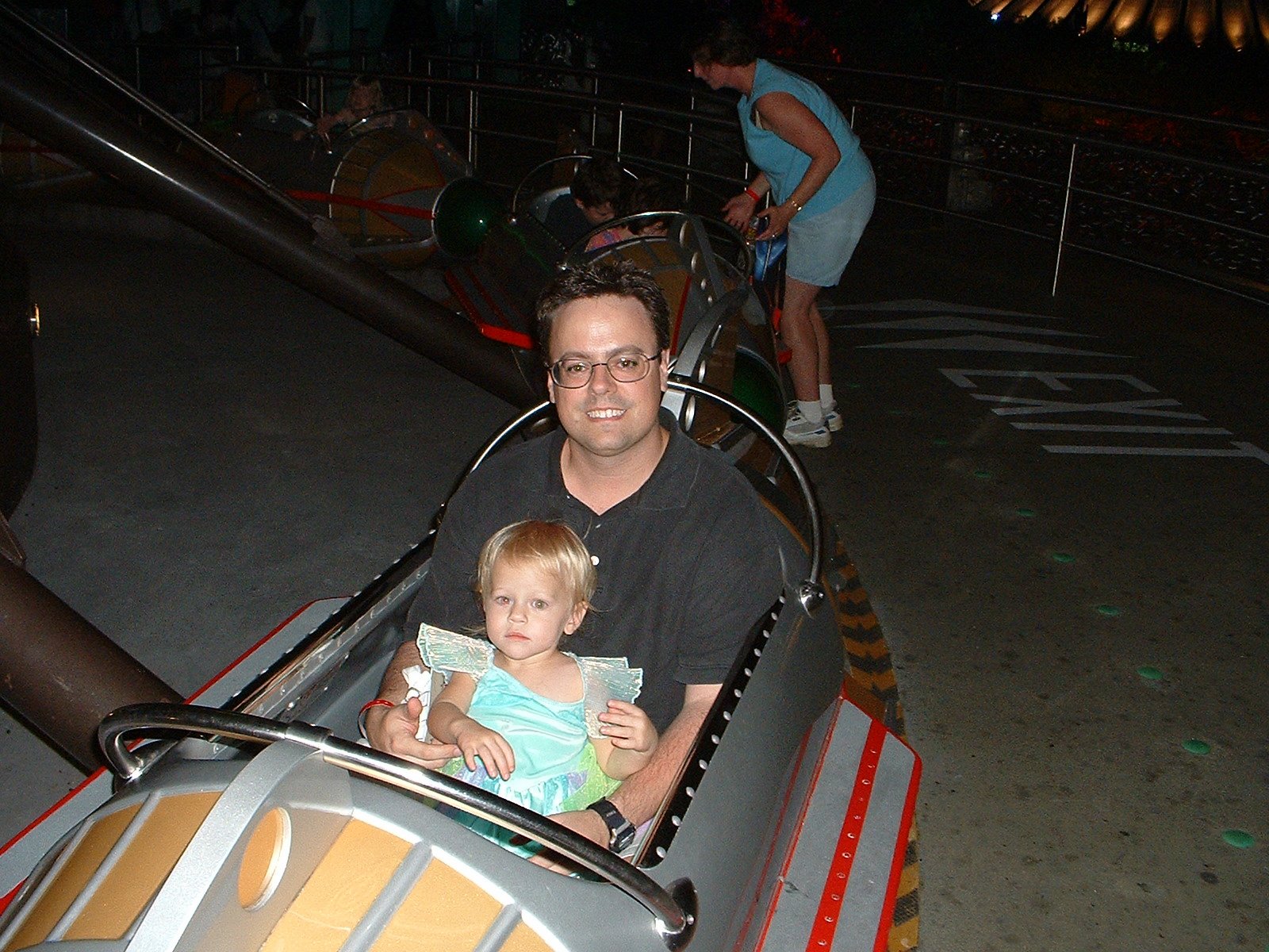 We didn’t do much today. It was a day to recover from all the stuff we did all week. Today’s picture is from yesterday’s trip to Disney World: me and Emily getting ready to ride the Astro Orbiter.