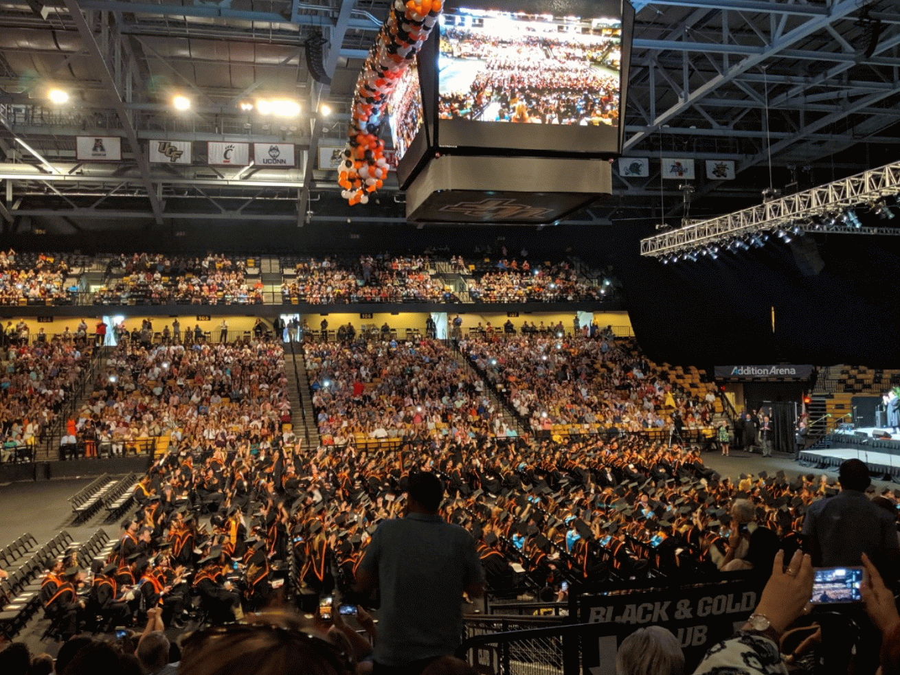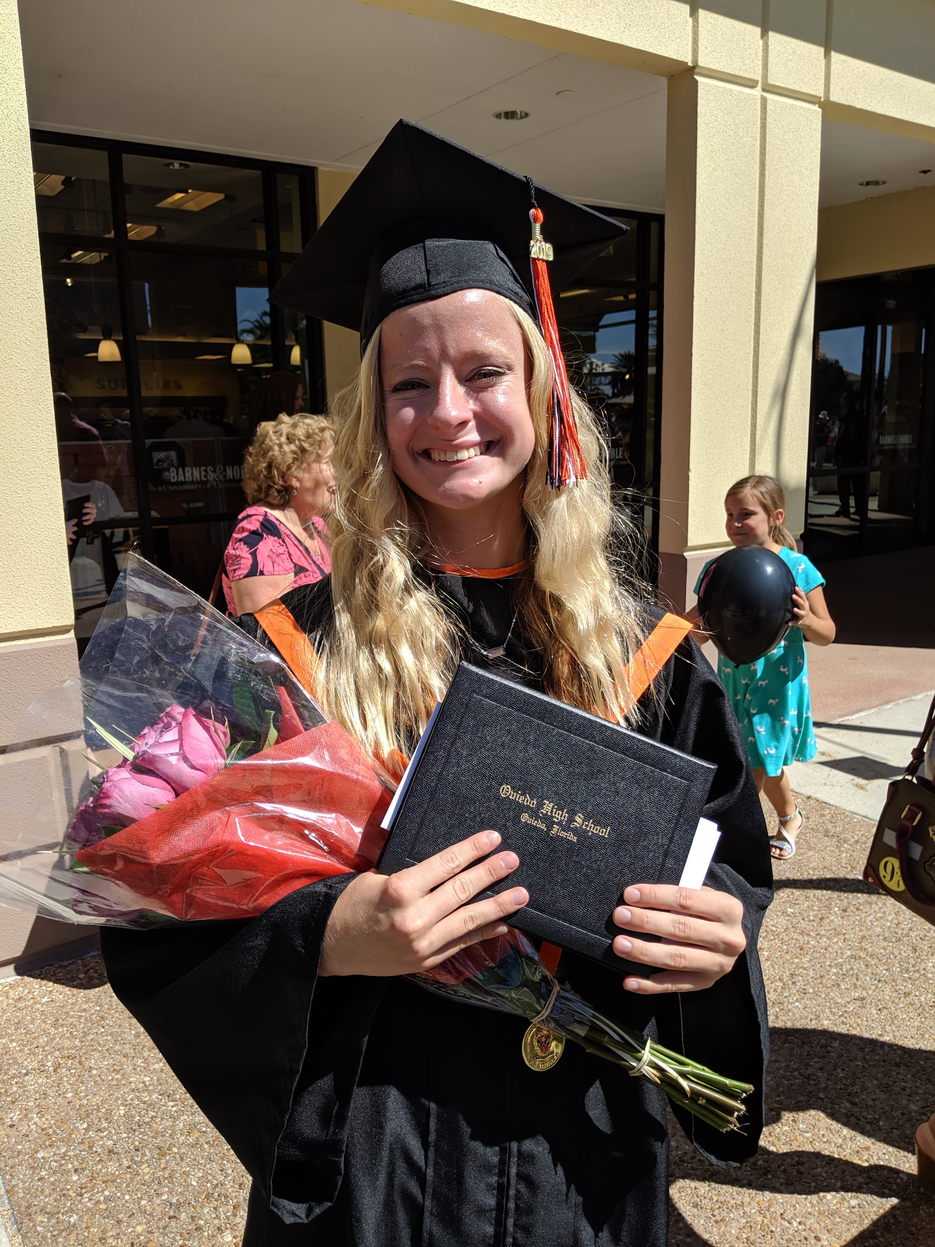 It’s finally here. Abby graduates from high school today! I’m so proud of Abby. I remember the day when she was getting on the bus the first day of Kindergarten. The graduation ceremony took place on the campus of the University of Central Florida at the basketball arena. After speeches from the principal, the two salutatorians, and the valedictorian, all 600 students including Abby walked across the stage. Finally balloons dropped upon the newly graduated students.